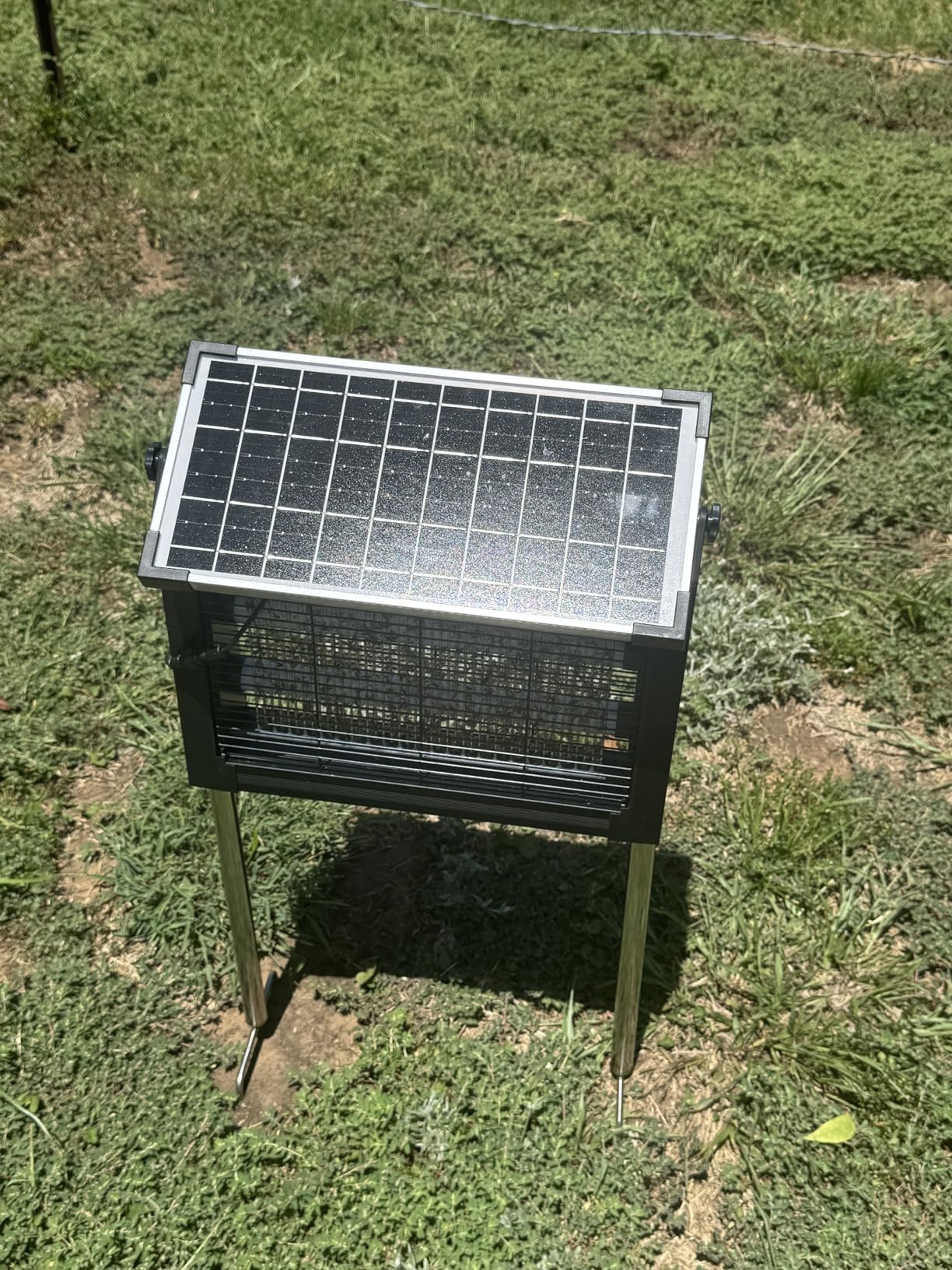 Place it where flying pests are most active, such as near patios, walkways, seating areas, or garden edges. For best charging performance, position the solar panel where it can receive direct sunlight.